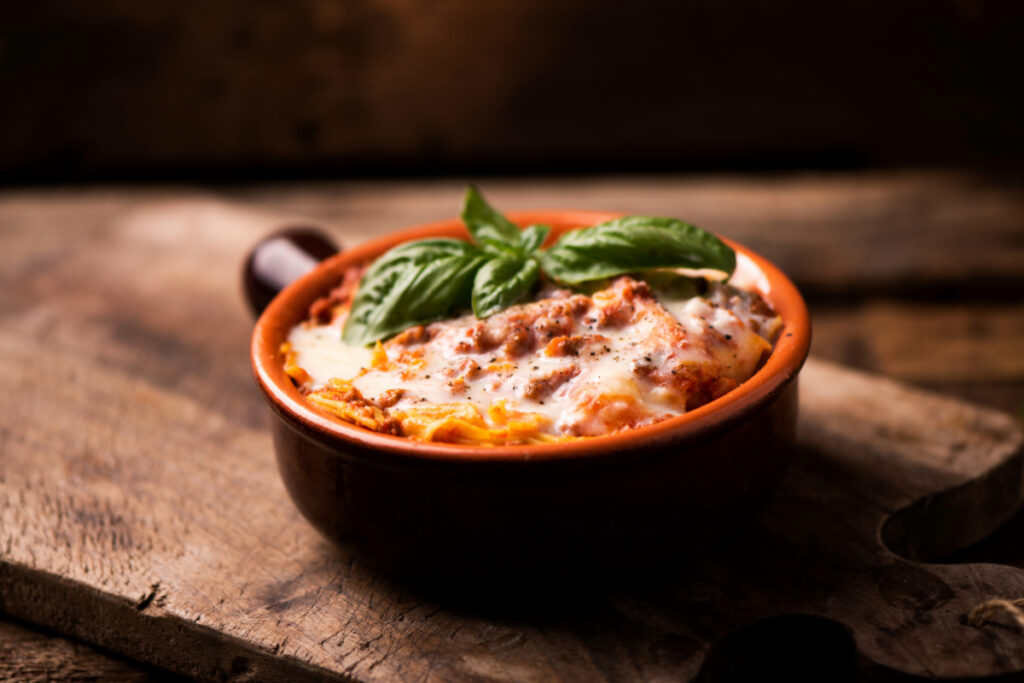 • Lasagnetta croccante con ragù: feine, selbstgemachte Nudelblätter, geschichtet mit aromatischem Ragù und im Ofen knusprig gebacken – ein echtes Stück Emilia-Romagna auf dem Teller.