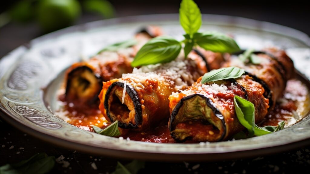 • Involtini di melanzane: Zarte, gegrillte Auberginenröllchen mit einer Füllung aus Kochschinken und geräucherter Scamorza – herzhaft, cremig, unwiderstehlich.